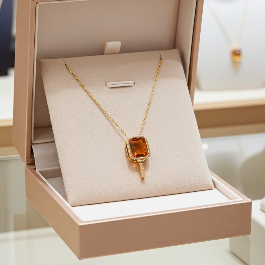 Sunny Victory blends a radiant 4-carat yellow quartz Citrine gemstone, set in our signature 14K Gold Paddle Silhouette. Designed to reflect the joy of the game and your momentum on and off the court.